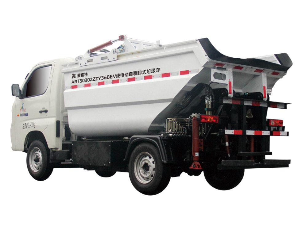 ART5030ZZZY36BEV純電動自裝卸式垃圾車主要用于物業小區、鄉鎮、商業區、旅游景區、學校等場所桶裝垃圾的分類收集運輸,箱體密封性好,純電動作業,使用成本低,零排放。