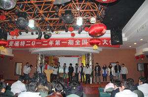2012年1月29日,愛(ài)瑞特2012年第一期全國(guó)營(yíng)銷(xiāo)大會(huì)在蕪湖市明遠(yuǎn)電力賓館隆重舉行并取得圓滿(mǎn)成功。