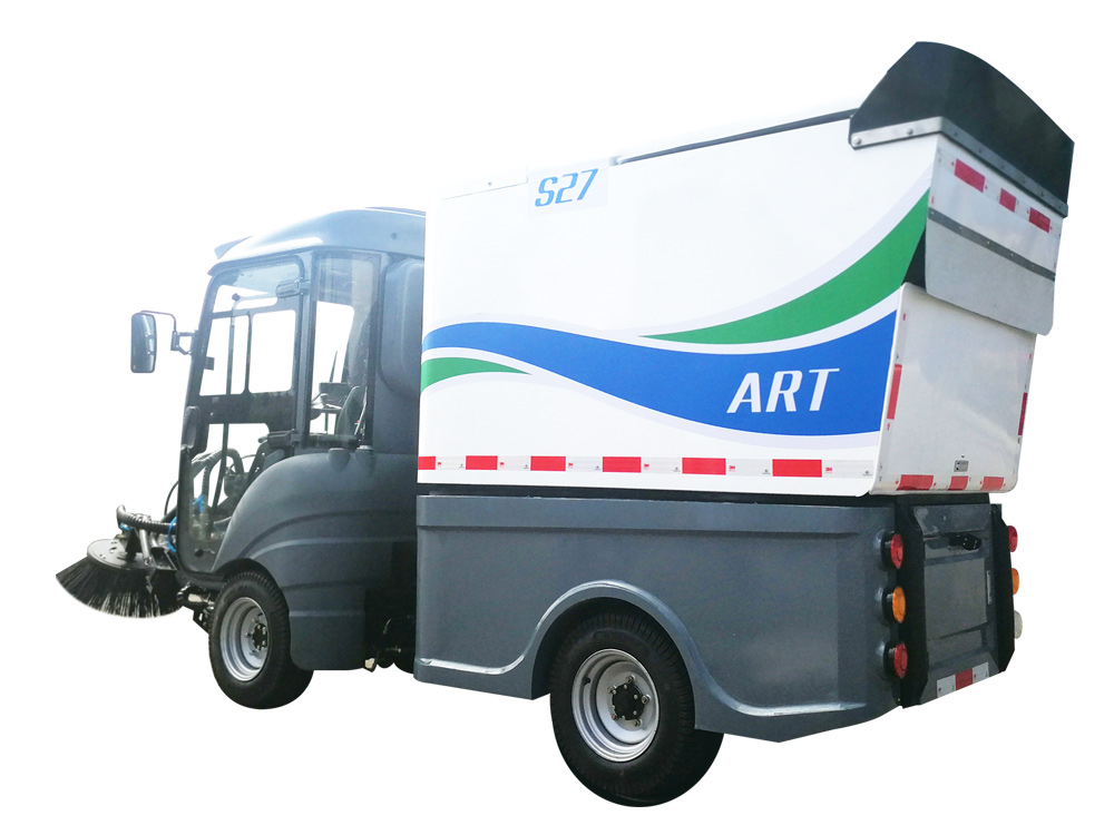 瑞清S27/S27E純電動道路清掃車主要用于柏油馬路、城市人行道、非機動車道及城市廣場等多種路面的清掃工作,采用純吸方式,可快速清掃落葉、石子、沙塵、白色垃圾等,垃圾箱容量大,高位自卸傾倒。